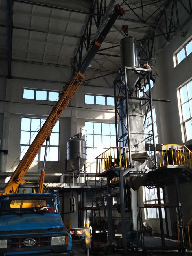 采用正壓氣力輸送將物料由雙錐干燥機(jī)送至冷卻降溫倉(cāng),冷卻料倉(cāng)由風(fēng)機(jī)在切線方向向內(nèi)鼓風(fēng),輔助物料熱風(fēng)交換,料倉(cāng)內(nèi)部采用網(wǎng)板折流結(jié)構(gòu),最大限度延長(zhǎng)物料在料倉(cāng)內(nèi)的折流時(shí)間,使每一粒可以充分完成熱交換。從而達(dá)到降溫目的。考慮到用戶生產(chǎn)地處東北,季節(jié)性溫差較大,顧鼓風(fēng)機(jī)采用變頻調(diào)節(jié)風(fēng)量,提高其使用效率。